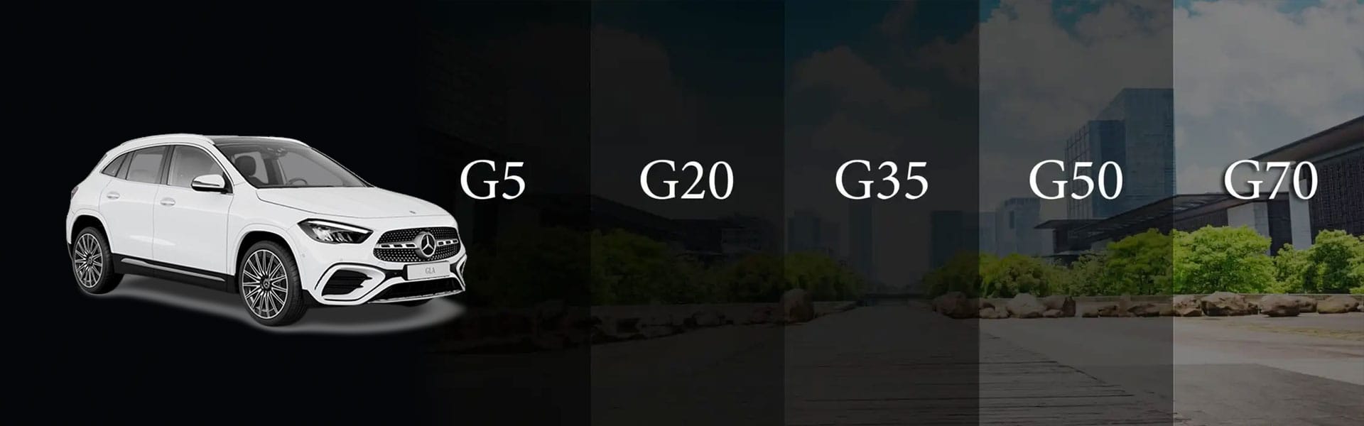 As películas 3M para vidros automotivos oferecem alto desempenho em conforto térmico e proteção UV, destacando-se as linhas: Crystalline (alta tecnologia / transparente), Ceramic IR (nanocerâmica / conforto térmico), Color Stable (não desbota), FX-ST (custo-benefício) e SAS (segurança / antivandalismo). As transparências (VLT) comuns incluem G5 (escuro), G20 (médio) e G35 (claro).